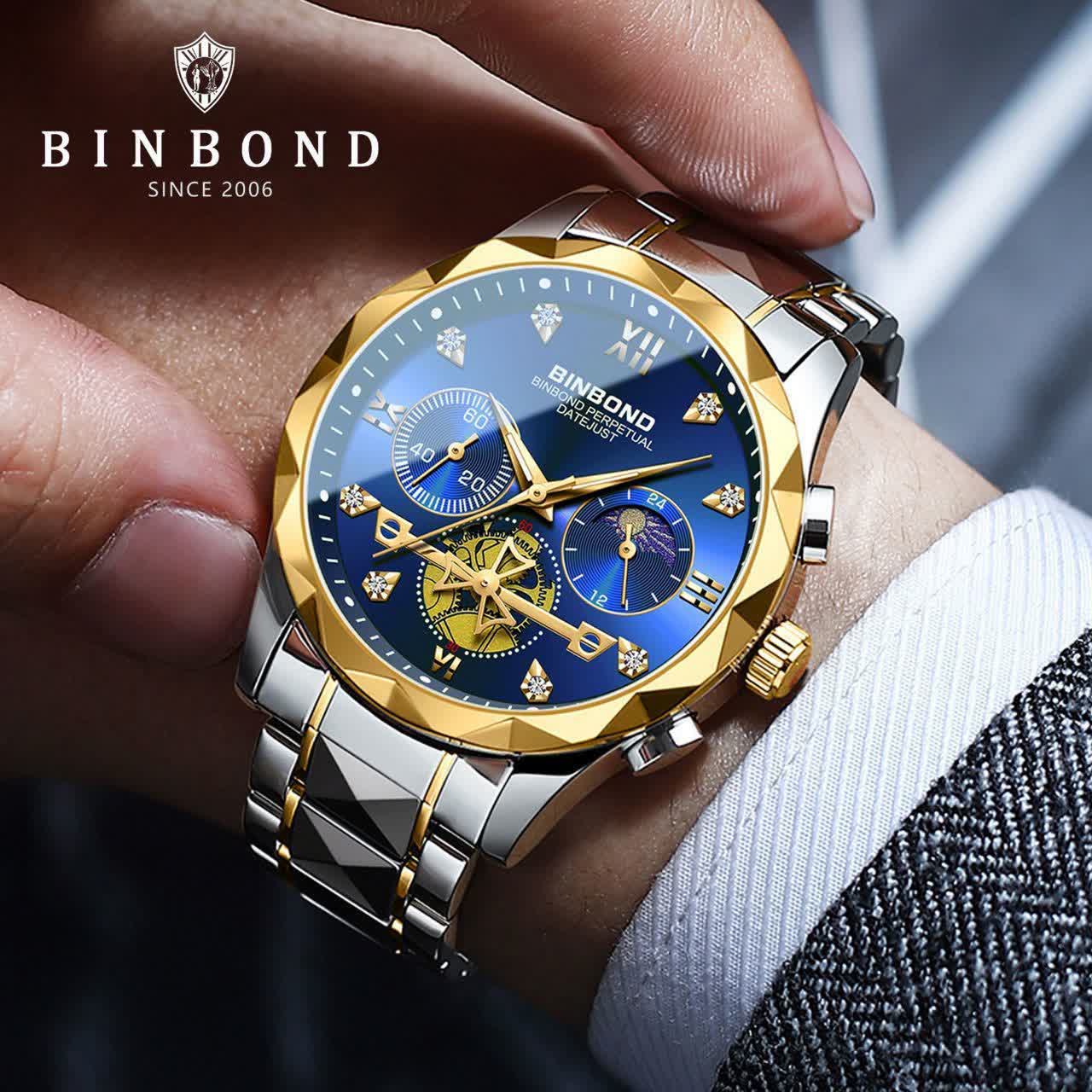 ساعت مچی مردانه بین باند اورحینال دوتقویم شب نما رنگ ثابت ضد اب BIN BOND