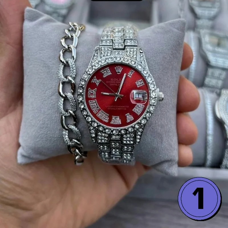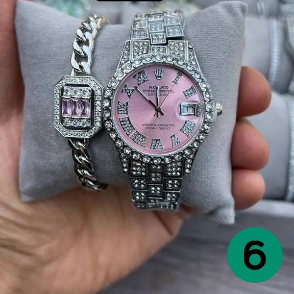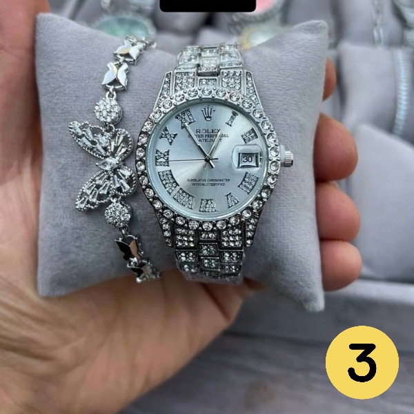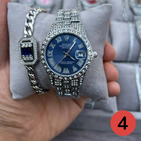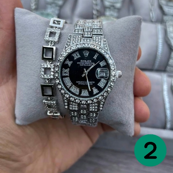 مشاهده محصولات مرتبطساعت رولکس فول نگین زنانه با طراحی شیک و پوشش کامل نگینهای درخشان، جلوهای لوکس و متفاوت به دستان شما میبخشد. ساخته شده از استیل ضدزنگ با موتور دقیق و مقاوم در برابر آب، این ساعت انتخابی ایدهآل برای خانمهایی است که به دنبال ترکیب زیبایی و کیفیت بالا هستند.