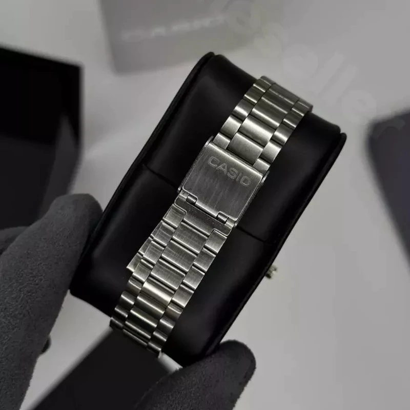 ساعت مچی مردانه کاسیو صفحه مربعی مشکی بند نقره ایی استیل شیک و خاص پسند عقربه نقره ایی ضدآب+باطری اضافی
