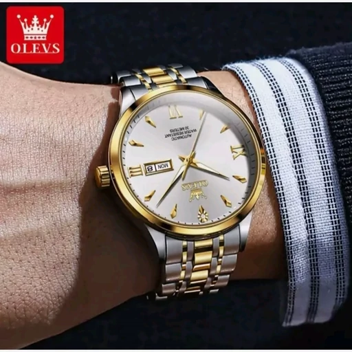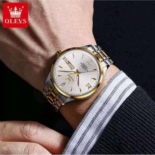 ساعت مچی مردانه آلوزOLEVSبند استیل نقره ای طلایی خاص وجذاب