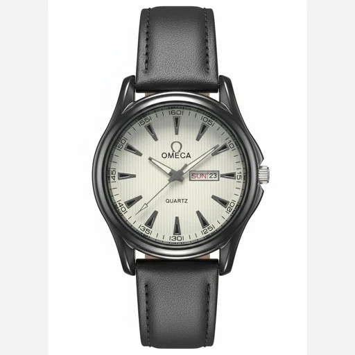 ساعت مچی مردانه امگا بند چرم درجه یک دوتقویم رنگ ثابت کیفیت بینظیر