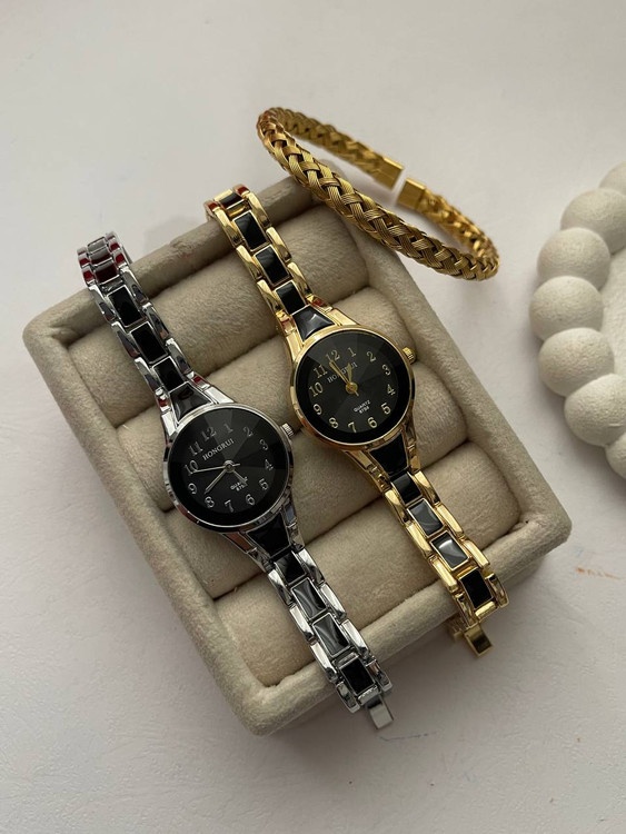 ساعت مچی زنانه هانگری مشکی طلایی رنگ ثابت تضمین قیمت