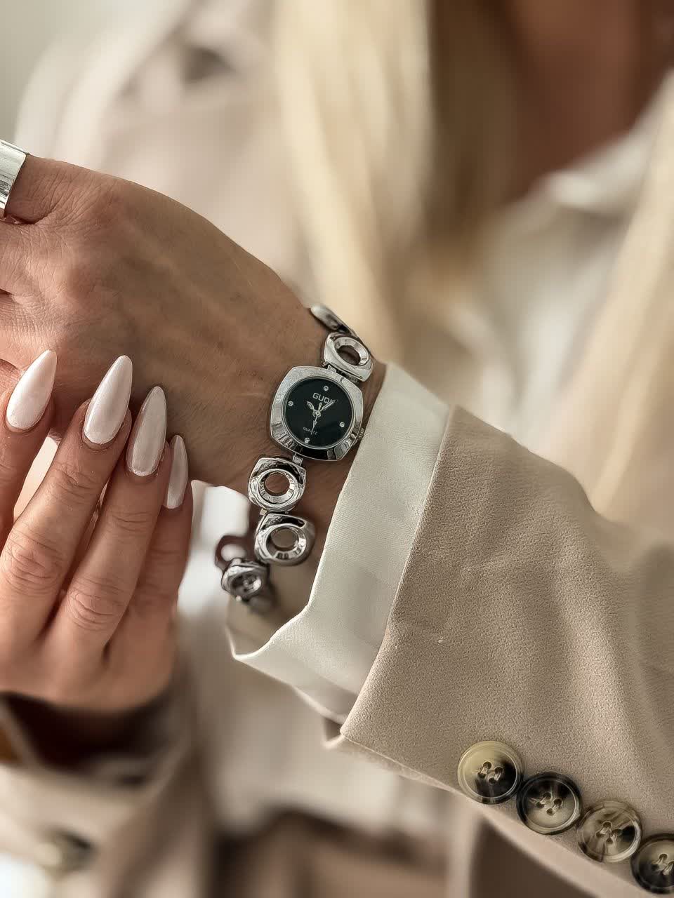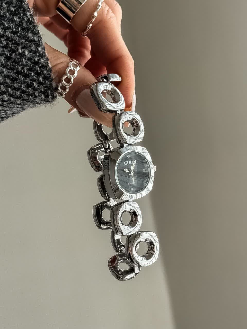 ساعت زنانه مارک GUQi قفل دستبندی موتور با کیفیت قاب و بند فلزی کیفیت بسیار عالی همراه با جعبه شیک ارسال رایگان