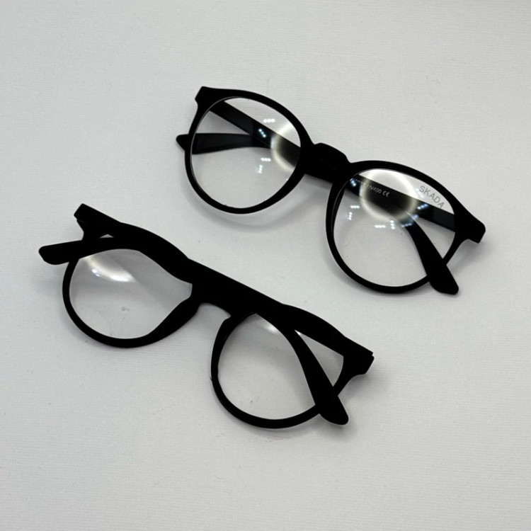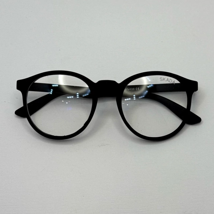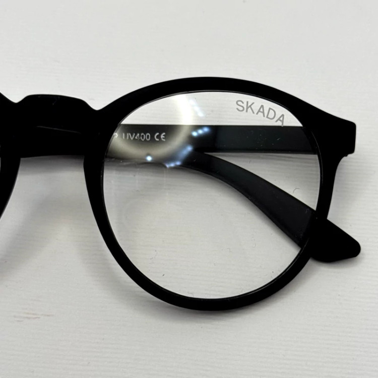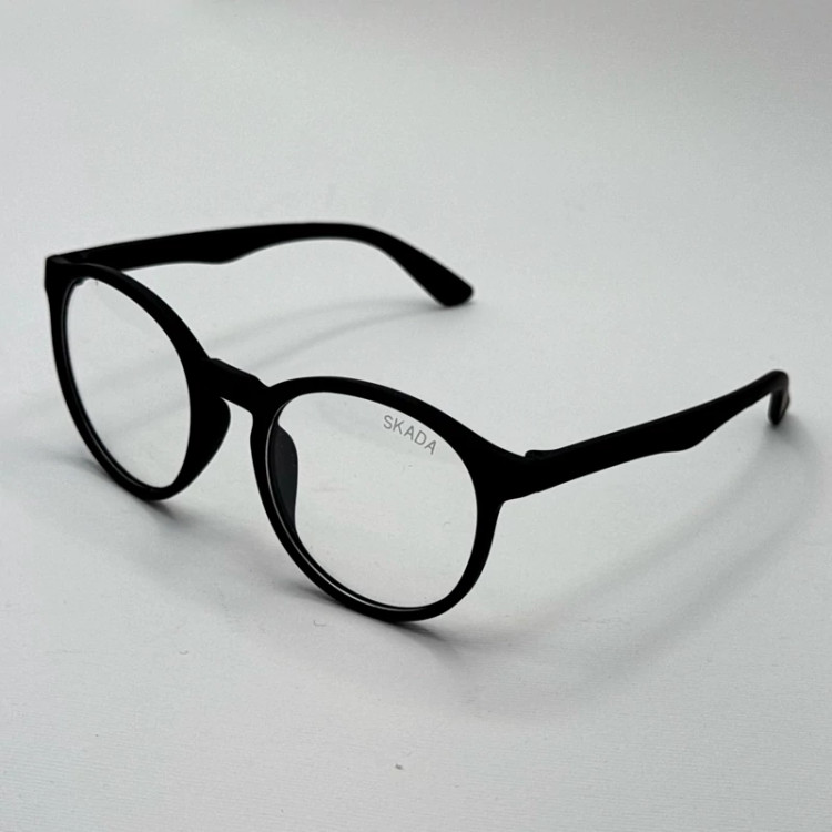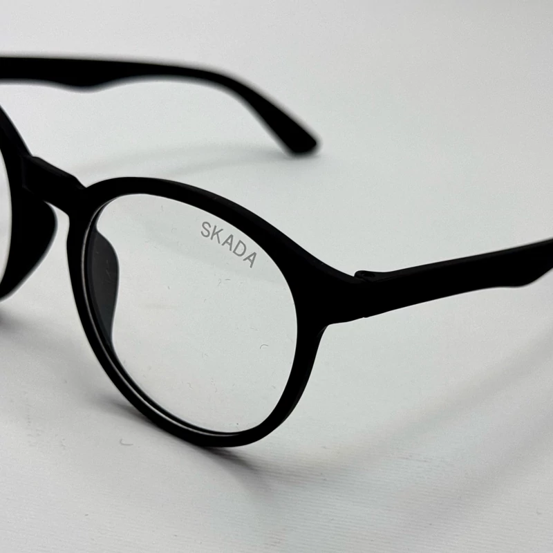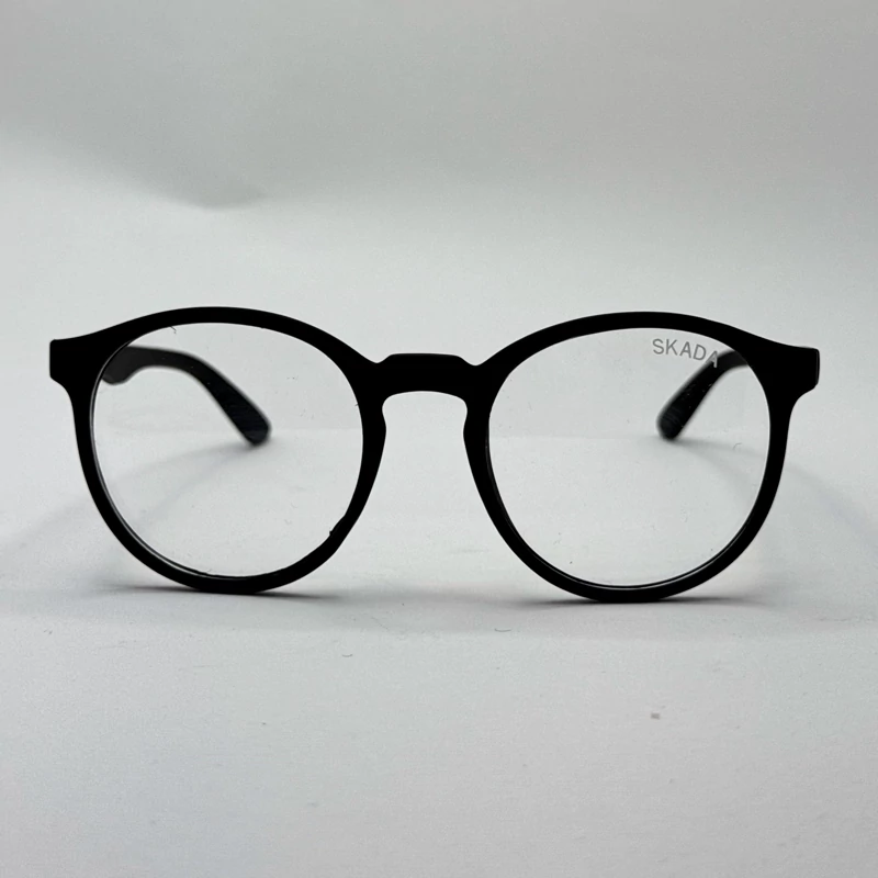 فریم عینک طبی گرد اسکادا مشکی به همراه کاور پارچه ای و دستمال نانو مخصوص عینک