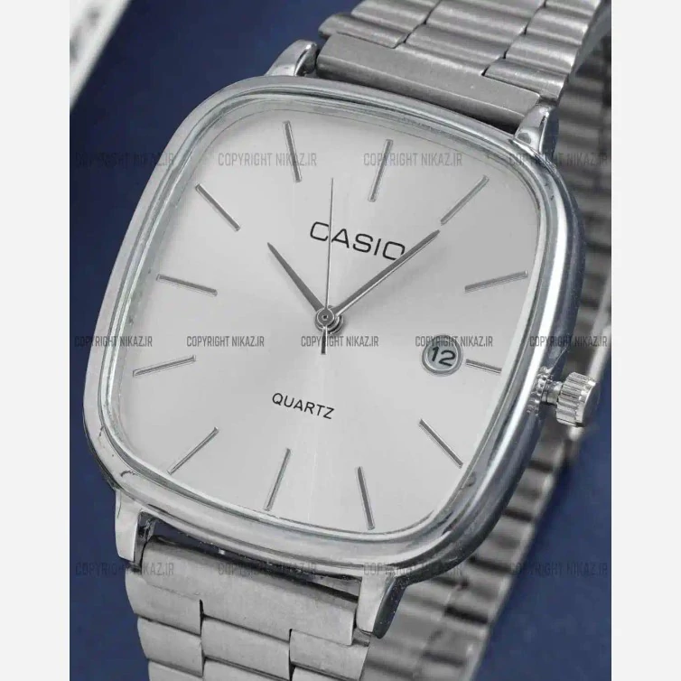 ساعت مچی زنانه کاسیوcasio بندنقره ای صفحه سفید عقربه طلایی رنگ ثابت کد2682