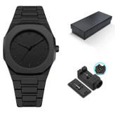 ترکیبی از طراحی مینیمال و زیبایی بیانتها. این ساعت مشکی با صفحهای ساده و بدون اعداد، تنها با نشانگرهای ظریف و بند فلزی هماهنگ، نمادی از وقار، دقت و سبک شخصی شماست.